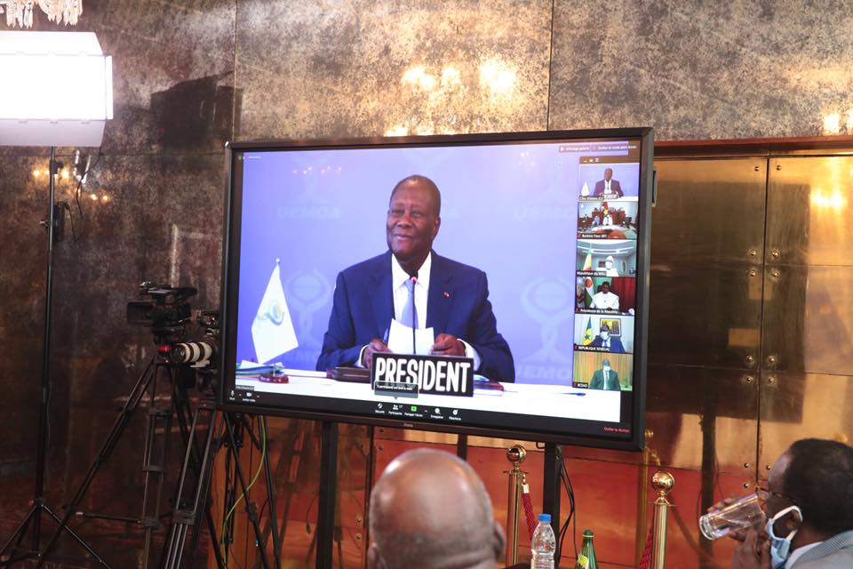 Le Président de la République, S.E.M. Alassane OUATTARA, a présidé ce lundi 27 avril 2020, par Visioconférence, une Session extraordinaire de la Conférence des Chefs de l’Etat et de Gouvernement de l’Union Economique et Monétaire Ouest Africaine (UEMOA), consacrée à la pandémie du Coronavirus (COVID – 19)