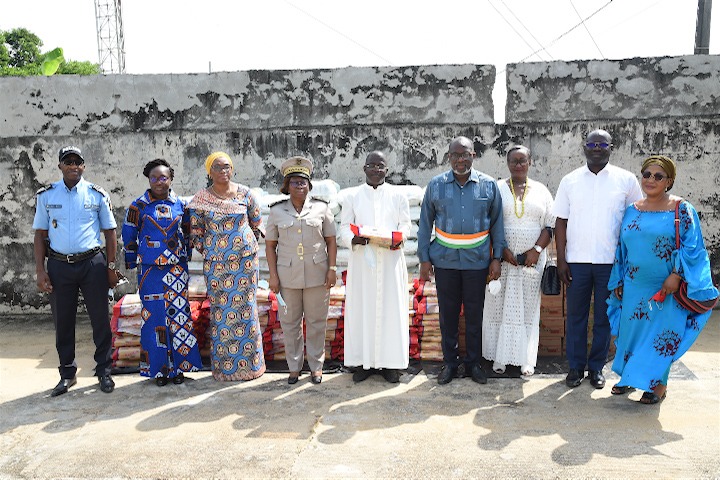 La Première Dame a profité du cadre de cette sympathique cérémonie pour faire des dons aux enfants, aux populations et à la Paroisse Sainte Thérèse de l'Enfant Jésus d'Assinie-Mafia. En effet, l'épouse du Chef de l'Etat a offert 200 sacs de riz, 200 sachets de pâtes alimentaires, 50 cartons de bidons d’huile, 25 cartons de tomates, 500 chaises, 500 bassines, 500 seaux et 100 lots de jouets aux enfants et aux populations d’Assinie. A la paroisse Sainte Thérèse de l’Enfant Jésus de la localité, la Première Dame a offert 80 sacs de riz, 200 pâtes alimentaires, 40 cartons de bidons d’huile et 15 cartons de tomates. La Première Dame a également offert la somme de trois millions F CFA au Maire d’Assinie. La valeur globale de ces dons s’élève à 15 millions F CFA.
