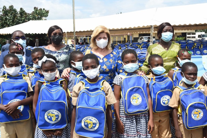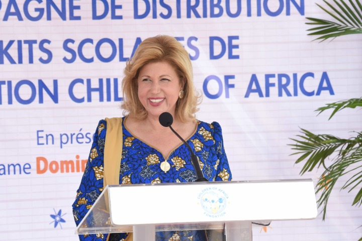 Madame Dominique Ouattara, Présidente de la Fondation Children of Africa a procédé au lancement officiel de la campagne nationale de distribution de kits scolaires pour le compte de la rentrée scolaire 2021-2022, le mardi 28 septembre 2021. La cérémonie de lancement officiel s’est déroulée dans l’enceinte du Groupe Scolaire Adiaké 3 appelé communément Dioulakro situé en face de la Brigade de Gendarmerie d’Adiaké. Nous vous proposons son discours lors de cette cérémonie.