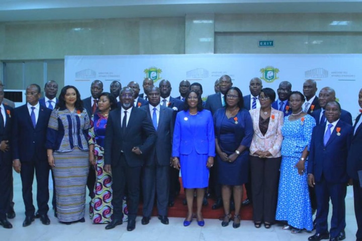 32 Ambassadeurs ivoiriens ont été faits officiers dans l’ordre national. C’était le jeudi 18 novembre 2021 à la salle de conférences du ministère des affaires étrangères, de l’intégration africaine et de la diaspora à Abidjan Plateau en présence de la ministre Kandia Camara Kamissoko.