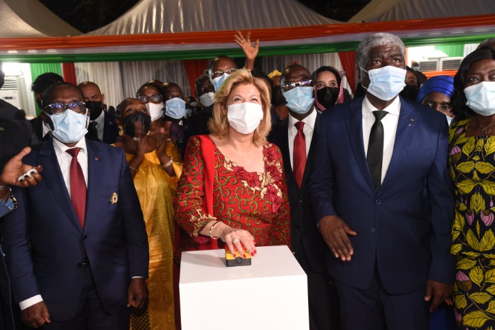 La Première Dame Dominique Ouattara a procédé au lancement de l’édition 2021 de l’illumination du District Autonome d’Abidjan, le jeudi 23 décembre 2021, au parc urbain ‘’Dominique Ouattara’’ à la Riviera 3, près du rond-point Mel Eg Théodore. Drapant pour ainsi dire la ville d’Abidjan d’un beau manteau de lumières à quelques jours du nouvel an.