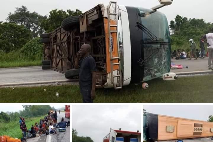 En effet, cet accident est intervenu à la suite d’un mauvais dépassement au niveau du PK 104, occasionné par un véhicule léger qui s'est retrouvé subitement devant le car de ladite compagnie. Lequel voulant l’éviter, s’est malheureusement retrouvé les roues en l’air. Le bilan fait état de 65 blessés. De nombreux dégâts matériels ont également été enregistrés.